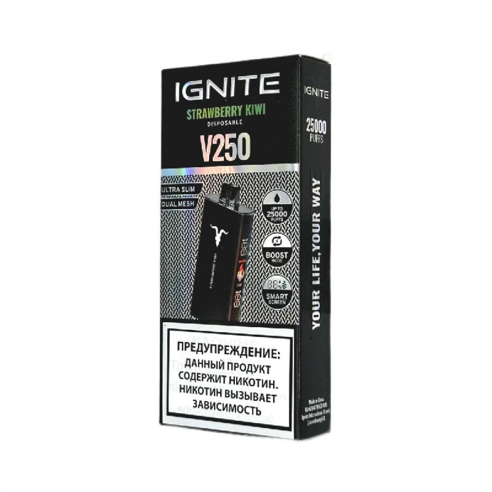 Электронная сигарета Ignite V250 Black 25000 - Strawberry Kiwi (Клубника киви) - купить в Балашове